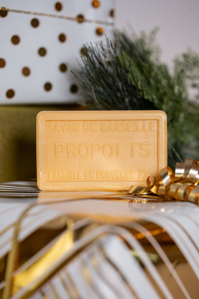 La propolis est la précieuse résine protectrice des abeilles, qui assure l'hygiène et la défense de la ruche. Pour les fêtes de fin d'année, gâte tes amis et ta famille avec une touche de force naturelle et de protection - une idée de cadeau idéale pour la saison froide. Le savon au miel et à la propolis soigne la peau en douceur, l'apaise et l'adoucit. Enrichie en propriétés antioxydantes et en nutriments précieux, la propolis aide la peau à se régénérer et lui procure une sensation de douceur. Un cadeau de la nature qui apporte chaque jour une sensation de bien-être et un peu de la force des abeilles dans la salle de bains.