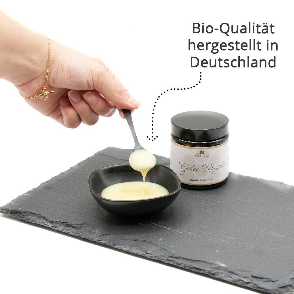 La gelée royale compte, avec le miel, le pollen et la propolis, parmi les produits apicoles les plus importants de la ruche et est considérée comme un "superaliment pour abeilles" en raison de ses précieux composants.